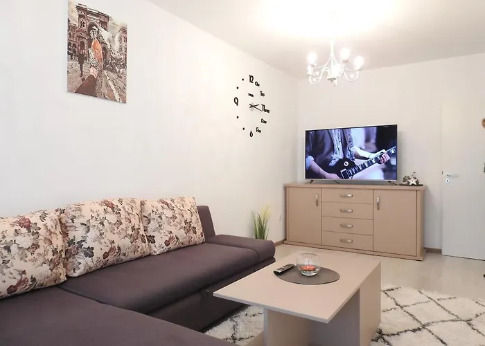 2-slaapkamer Trust Apartaments 2 ligt op 10 minuten rijden van het Museum voor Eerste Roemeense School. Dit 90 m^2 grote appartement omvat een terras uitkomend op de berg.